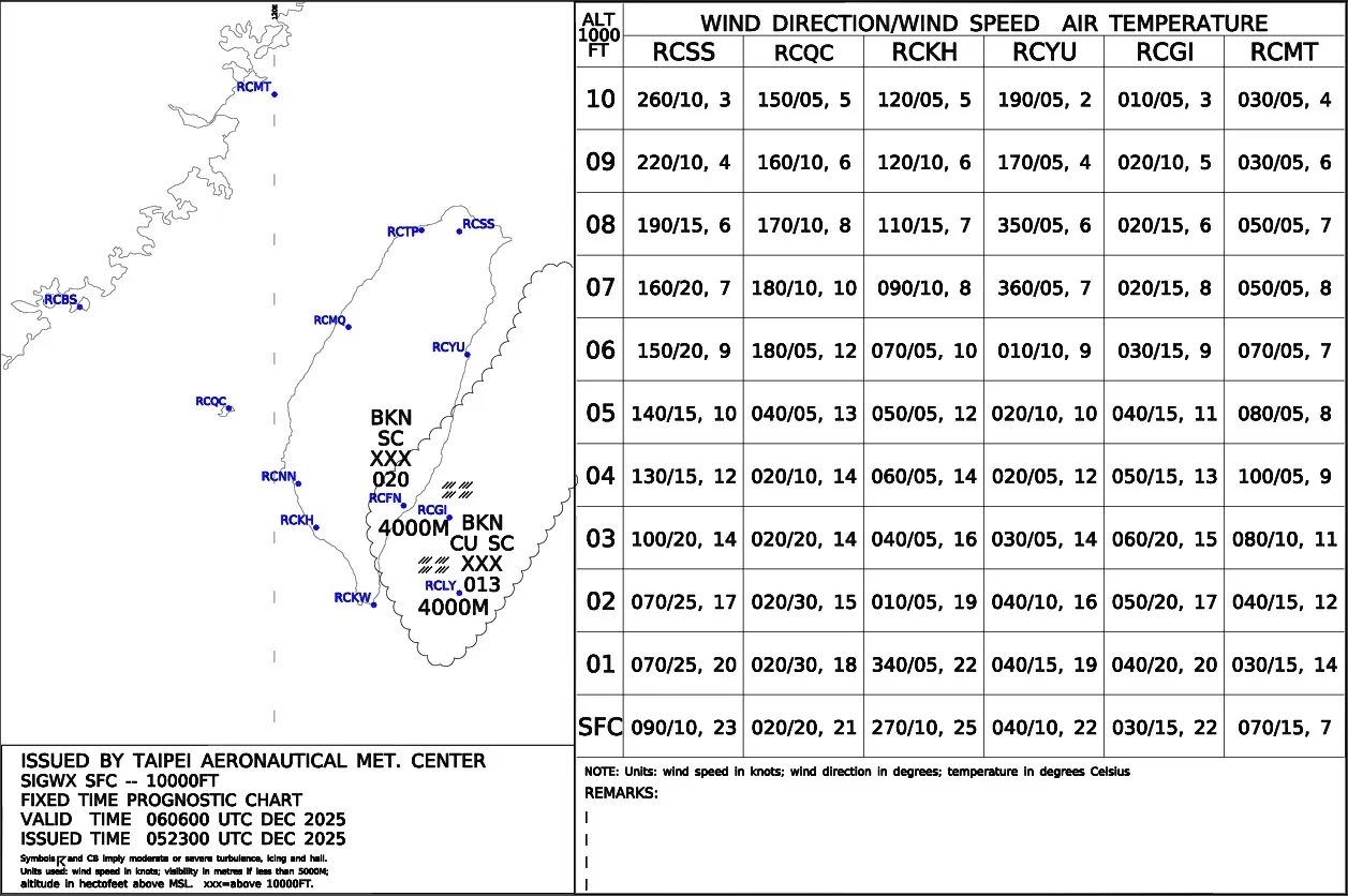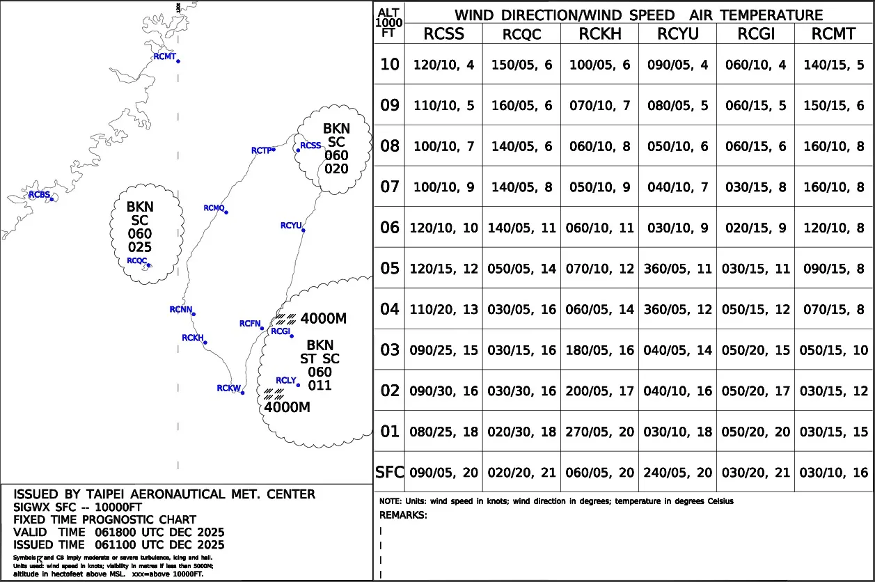 061000Z 04018KT 9999 FEW012 BKN040 23/17 Q1018 RMK A3006 =